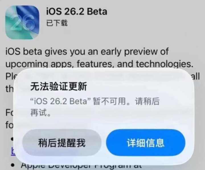 对此外界认为,这可能是苹果的 C1(X)芯片存在兼容性问题,后续苹果会进行修复,并重新发布修订版的 iOS 26.2 测试版,所以使用 iPhone 16e 以及 iPhone Air 的用户需要再等等。