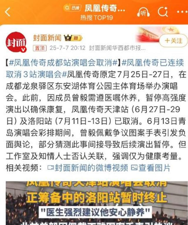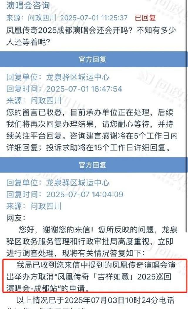 只是这一点侥幸如今又被“浇灭”了,原本定于七月下旬的成都站演唱会也取消了,