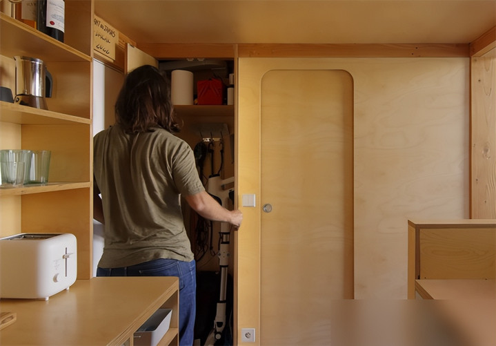 暗卫用壁挂马桶和电热毛巾架,厨房塞进蒸烤箱加洗衣机,每寸地儿都榨得干干净净。