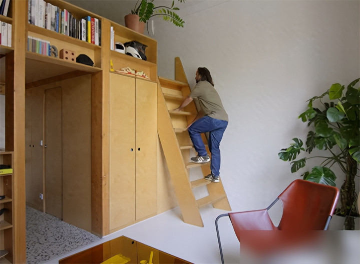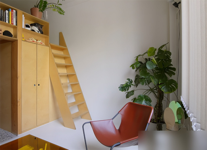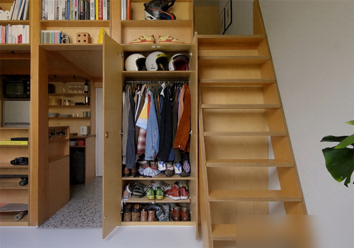 隔层卧室相当于白赚一间房,楼梯底下藏杂物区,犄角旮旯都不放过。