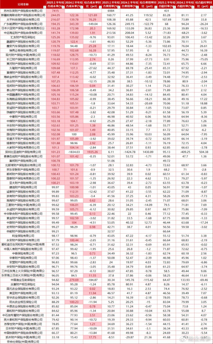 与此同时,有多家机构综合成本率同比上升。比亚迪财险同比攀升1935.26个百分点,新疆前海联合财险同比增幅达121.69个百分点,太平科技增长76.29个百分点,鑫安汽车同比上升25.28个百分点,日本兴亚财险增长20.3个百分点。