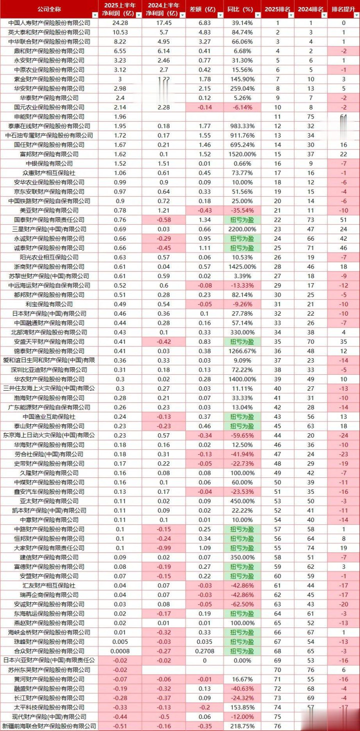 同期,有16家机构净利润同比扭亏为盈,包括国泰财险、永诚财险、诚泰财险、安盛天平财险、中国渔业互助、泰山财险、中路财险、恒邦财险、大家财险、安盟财险、东海航运、海峡金桥财险、珠峰财险、合众财险。